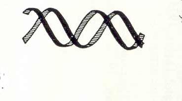 This drawing illustrates a short piece of the DNA helix and illustrates that it contains two strands . The two strands are kept together by the base pairs.